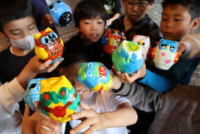 5年生は、家庭科の裁縫の授業で小物入れを作っています。その様子です。どの児童も器用に針と糸を使って裁縫をしていました。素敵な小物入れが出来上がっていました。
