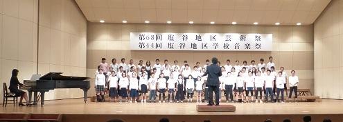 9月27日に、矢板市文化会館で塩谷地区学校音楽祭が行われ、本校の6年生を中心とした5年生と4年生の希望者を含めた58名が、A部門の合唱で参加しました。
