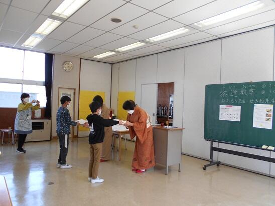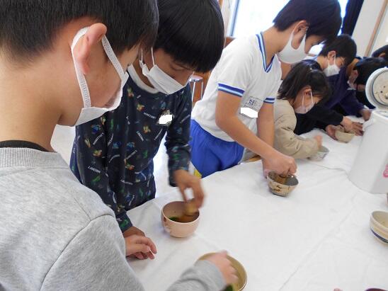 3月9日(木)2・3校時 2・3・4組児童は、ランチルームで茶道体験をしました。地域にお住いの大森様・関根様(矢板市教育委員会生涯学習課管轄)が簡単なお茶の作法について教えてくださいました。子ども達は、各自、茶筅でお茶をたてお菓子と一緒にいただきました。静かな心豊かな時間が流れました。大森様・関根様 ありがとうございました。