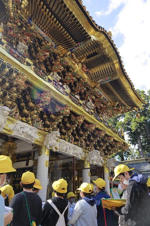 子供たちは、東照宮にある陽明門などの様々な歴史的建造物、三猿や眠り猫などの細緻な細工に感心しながらメモを取ったり細部をじっくり観察したりしました。