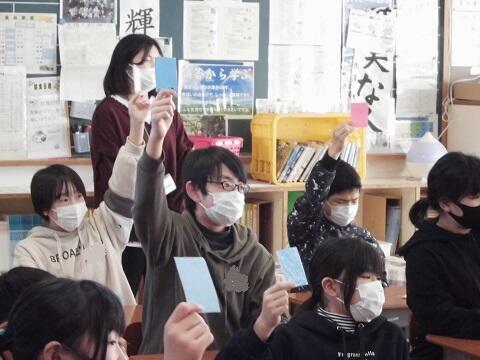 3時間目に6年生を送る会を行いました。今年度は新型コロナウィルス感染症対策のため、オンラインで実施しました。
