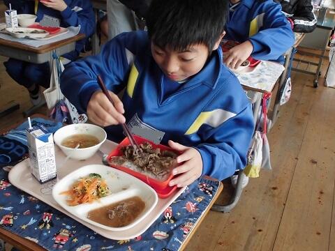 今日の給食は、とちぎ和牛を活用した献立の第5弾で、栃木県産とちぎ和牛を使用した『ビビンバ』でした。また、「にんじん・白菜・しいたけ・ねぎ」などの食材は、矢板市の農家の方が大切に育てた野菜を提供していただきました。この事業には、栃木県の地産地消元気アップ牛肉給食推進事業を活用しています。
