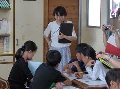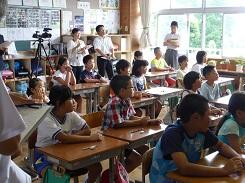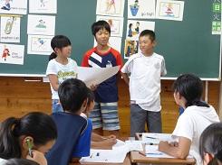 7月18日の2校時に4年1組が、3校時に6年生2組が外国語活動の研究授業を行いました。これは、先週行った授業を検討して、指導法を改善して別の学級で行ったものです。