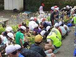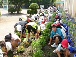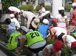 7月19日の清掃の時間に、みどり活動で花壇の除草を行いました。大きい草は比較的除草しやすいのですが、小さい草は手で摘みにくので苦労する姿もありました。