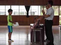 今回の集会では、矢板市小学校陸上競技大会と塩谷地区陸上競技大会の入賞者表彰、矢板市小学生ソフトボール大会の表彰を行った後、校長の話を行い、夏休みに向けて学習面・生活面・健康面について3人の先生が、全体的な話を行いました。