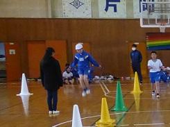準備運動をしてから、体育館の中で4つに分けたコートの中で、競技をしましたが、目標にしていた回数より多く跳べて満足そうな児童と、失敗してがっかりしている児童の姿が多くあり、目標を持って取り組んできた意欲が感じられます。