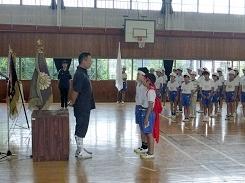本日は、気温が上がる前の1校時に、開会式やラジオ体操の隊形確認等を行いました。