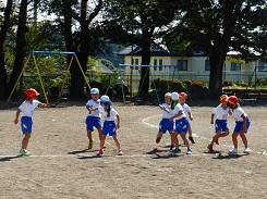 本日は、雲一つない見事な秋晴れ、快晴でした。初めて全員の赤白帽子がそろい、青い空と相まって、とても映えました。運動会当日まで、保存しておきたいような空の下で、さわやかな風を受けながらの練習風景でした。