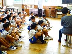 9月5日の5校時前に、1年生は教室で、2~6年生は体育館で、竜巻訓練を行いました。