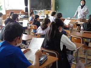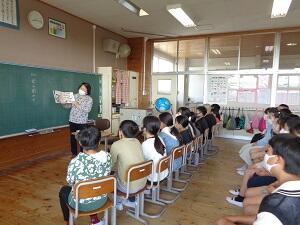 2校時に行われた外国語授業の様子。「世界の子ども達の生活について聞き取ろう」というめあてで、授業が展開されました。