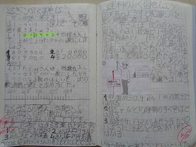 連休が明け、子ども達の家庭学習ノートが毎日のように校長室へ届けられています。今回は3~6年生のノートの紹介です。