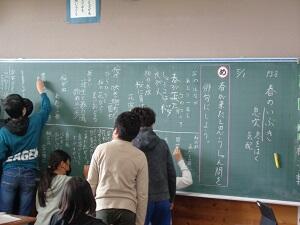 春が来たと感じる瞬間をノートに書き留め、それを友達同士で確認し合いました。その後、感じたことを俳句にしていきました。板書された子ども達の俳句には、「春らしさ」ががあふれていました。