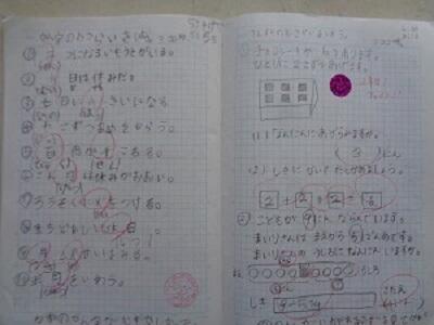 2年生と5年生の家庭学習ノートが校長室に届いていました。取り組む内容に偏りがないよう工夫しています。