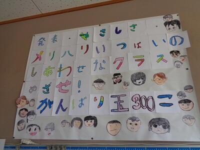 3年生のクラス目標は「メリハリいっぱいのしあわせなクラス」です。中学年になり、授業と休み時間のメリハリをつけて頑張っている3年生の様子が伝わってきます。