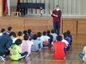「お話ポットの会」の皆様にご来校いただき、今年度になって初めての読み聞かせが行われました。