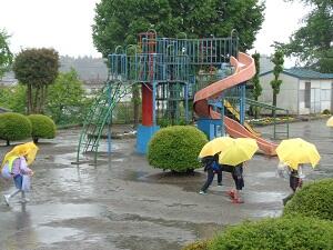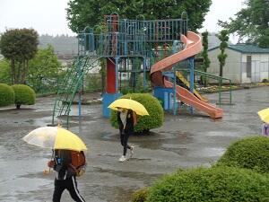 5連休明けの朝は雨模様。雨にも負けず、子ども達は元気に登校しています。