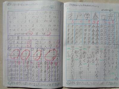 4年生の家庭学習ノートです。毎日のコツコツ努力している様子がうかがえます。