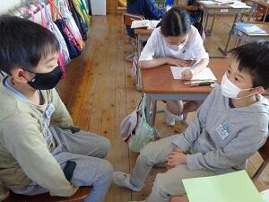 3人1組になり、聞き手・話し手・記録者に分かれて活動しました。いろいろな立場を経験することで、子ども達は「話を広げる聞き方」「分かりやすい話し方」「要点を抑えたメモの取り方」等の大切さを実感しました。