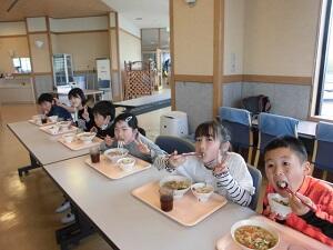 子ども達は給食を食べながら真剣に聞いていました。オンライン後、6年教室では約束事を守って整然と“おかわり”をする子ども達の姿も見られました。