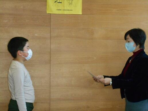 3月14日(火)卒業式予行練習終了後、体育館で卒業PTA祝賞授与・体育優良児童表彰を行いました。PTA祝賞は、卒業証書入れフアイルです。代表児童が受け取りました。体育優良児童表彰を受けた児童の皆さん、おめでとうございます。