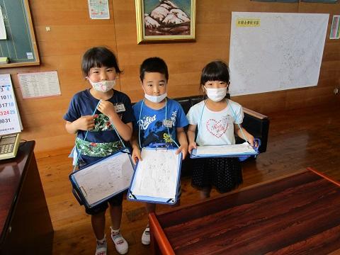 各グループごとに校舎内のポイントを回り、それぞれのポイント担当の先生にシールを探検カードに張ってもらいました。