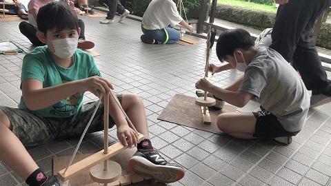 一つ目の活動は公園散策で、公園内の自然を観察したり長峰公園シンボルタワーの展望台から矢板市の様子を眺めたりしました。子供たちは植物や生き物の様子を楽しそうに観察して学んでいました。また、公園内の地域の方に元気な声であいさつをすることができました。