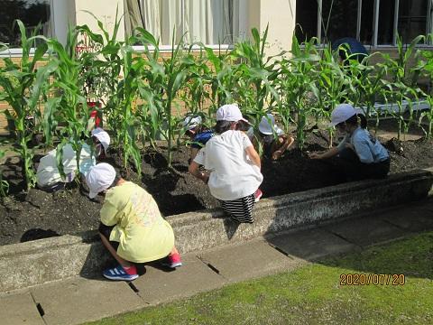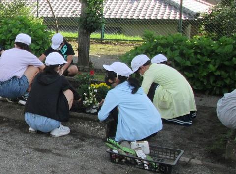 6月に植えた花の苗は少しずつ成長し、きれいな花を咲かせています。子供たちは、除草活動をしながら自分たちが世話をしている植物の成長を実感し、今後の花壇や農園の管理へのやる気をより一層高めるとともに、自分たちの仕事に責任をもって取り組むことを意識することができました。