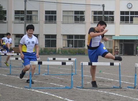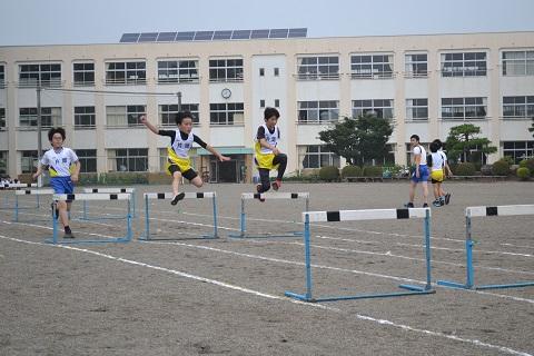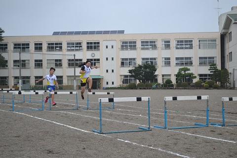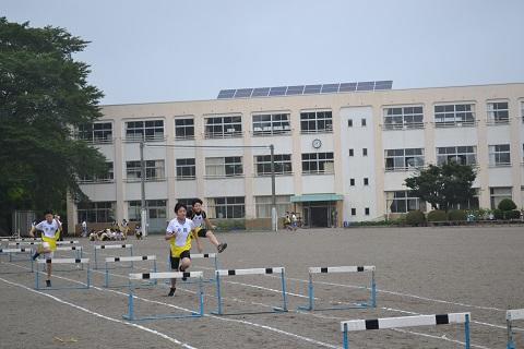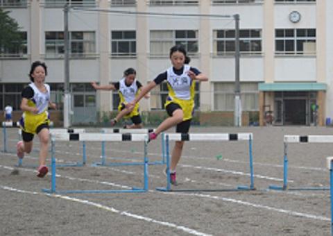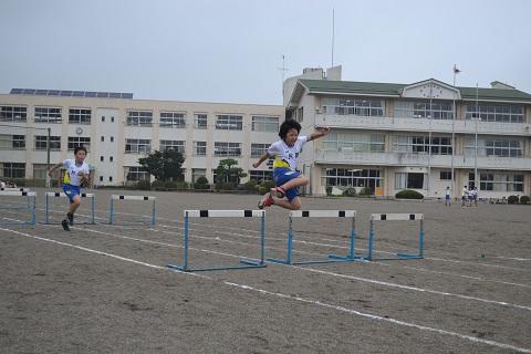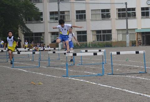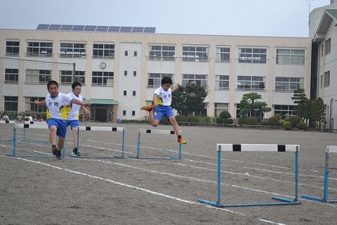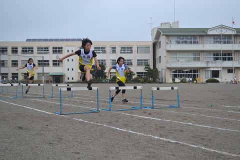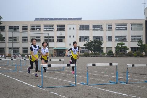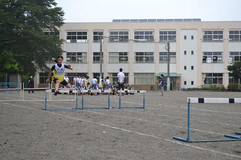 今年度は市や地区の陸上競技大会が中止になりましたが、子供たちが体育の時間や日頃の努力の成果を発揮する場として、走り幅跳び・ボール投げ・80mハードル走の三種目の競技を行いました。