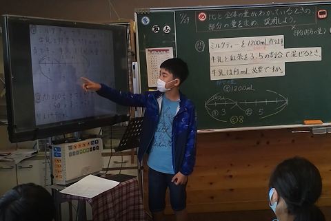 子供たちは課題の解決方法を自分たちで考え、隣の友達や学級全体に自分の考えを説明したり、友達の考えを他の子に伝えたりして学びをつなげていくことができました。