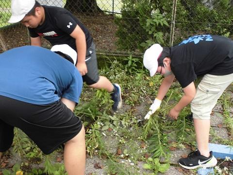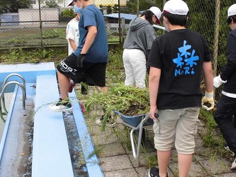 本校では本年度は体育の授業でのプールの使用はありませんので、プールサイドに雑草などが多く生えていました。しかし、6年生たちが額の汗をぬぐいながら除草を行ったことで、プールサイドの環境もだいぶ整いました。