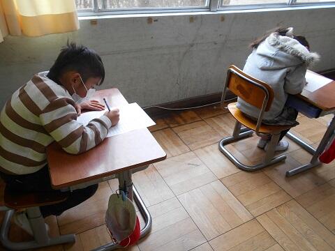 集中力を高めるためと基礎・基本の定着のため、問題数と制限時間を決めて計算問題を解くという、3~6年生が行っているルールで行いました。
