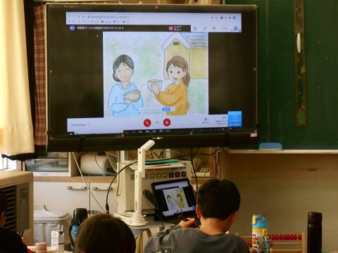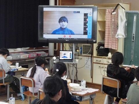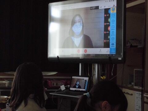学習支援員の先生とスクールサポートスタッフの先生が本日最終勤務日となり、昼休みにオンラインで子供たちにお別れのあいさつをしました。