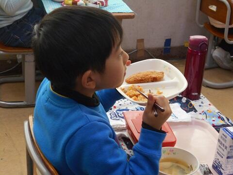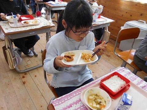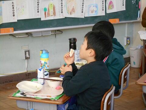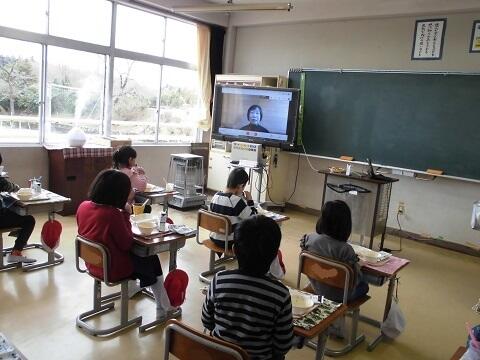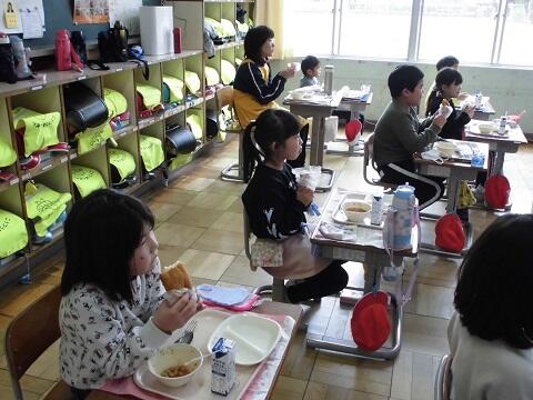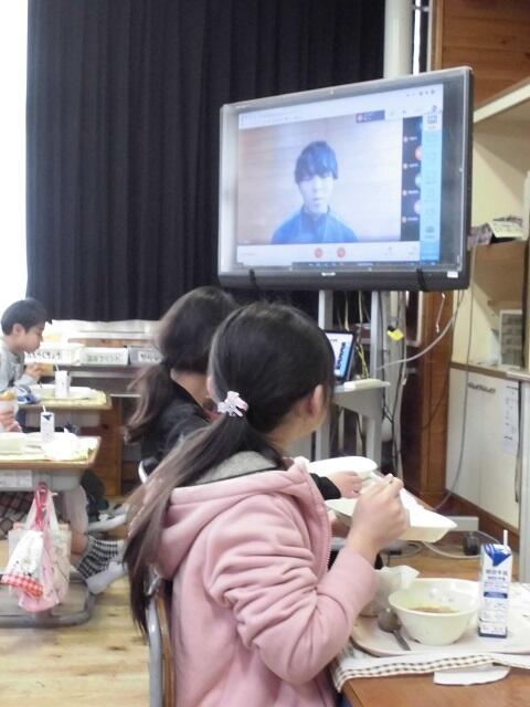 給食の時間に放送でお別れのあいさつがあり、子供たちは別れを惜しんでいました。