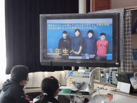 3時間目に6年生を送る会を行いました。今年度は新型コロナウィルス感染症対策のため、オンラインで実施しました。
