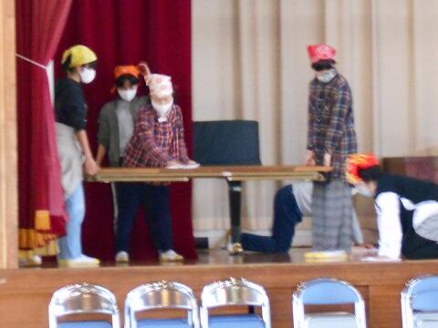 5時間目に3月15日(月)の卒業式予行のための会場準備を5年生が行いました。