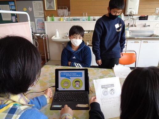 2月21日(火)12:20~ 保健委員会によるオンラインお昼の放送は、保健室からの配信でした。保健員会クイズの解答と説明でした。クイズに応募した児童のうち、正解回答が多かった児童名も発表されました。