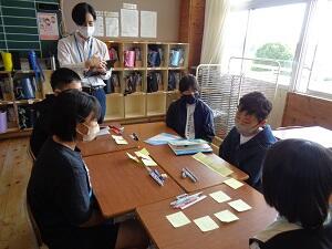 6年生の国語授業の様子。グループごとに話し合うテーマを設定し、互いの意見を交流しました。