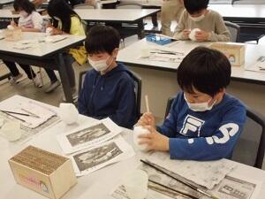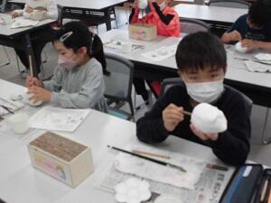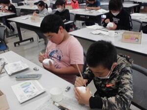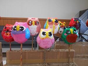お昼を食べ、午後は「フクロウの絵付け」を行いました。友達と協力して、楽しく活動する子ども達の姿が印象的でした。