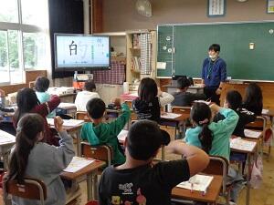 本時は「問いと答えを見つけよう」というめあてで、子ども達は文章を真剣に読んで“問い”に対する“答え”はどこかを考えていました。挙手の姿勢も素晴らしいです。