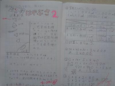 5年生の家庭学習ノートです。5年生は「丁寧なノート」を心がけている児童が多いようです。