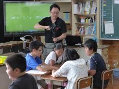 7月18日の2校時に4年1組が、3校時に6年生2組が外国語活動の研究授業を行いました。これは、先週行った授業を検討して、指導法を改善して別の学級で行ったものです。