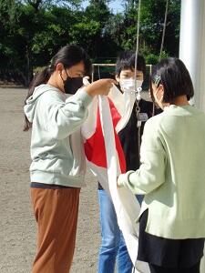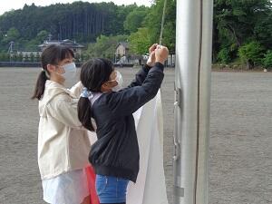 毎日、6年生が欠かさず国旗を揚げる役割を担っています。6年生に聞いてみると、1週間交代で国旗当番を担当しているそうです。