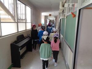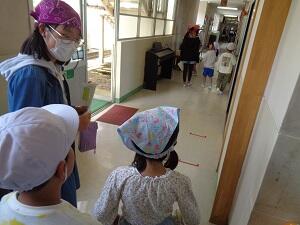 本日から、1年生が「なかよし班清掃」に入りました。初めて1年生が入るということで、清掃前に各班の班長・副班長が1年生を清掃場所に案内しました。
