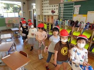 「お・か・し・も」の約束のうち、本日の避難経路確認では「し(しゃべらない)」を重点指導しました。