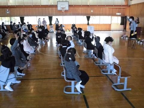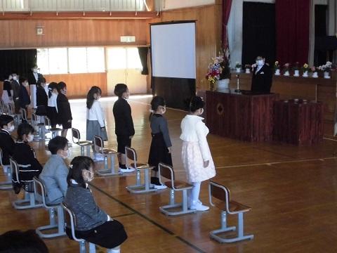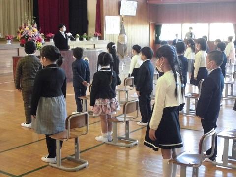 1年生は、いすにきちんと座り、担任から名前を呼ばれると元気な声で、「はい!」と返事をし、すばらしい態度で式に臨むことができました。