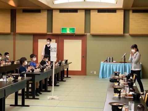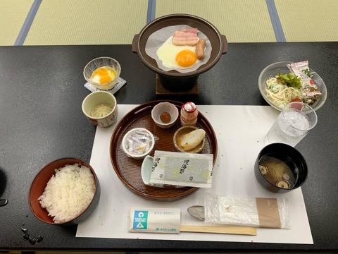 朝食も、コロナ対策をとり、バイキング方式ではなく、個別に用意していただきました。子供たちは、生卵を、目玉焼きやスクランブルエッグに調理して食べました。