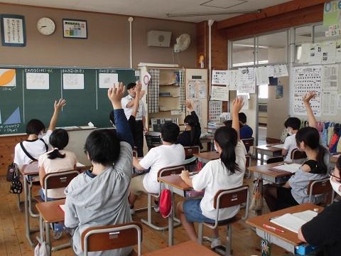1・2校時に6年1組と2組で算数科の授業を、校長先生が行いました。