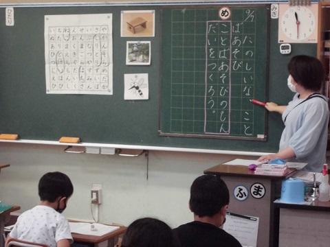 3校時、1年生の国語科研究授業を行いました。本時は『たのしいな、ことばあそび』の学習で、身近なことを表す語句の量を増やし、語彙を豊かにすることをねらいとして授業を展開しました。
