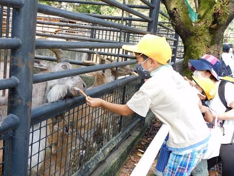 そして、いよいよ園内見学です。象やキリン、羊などを見たり餌をあげたりしながら子供たちは動物園で楽しみながら学びました。