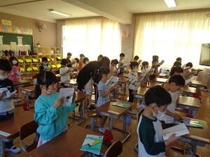 3年生と5年生は聴力検査がありました。5年生の様子を見に行ってみると、本を持参して待ち時間も有効に使っていました。